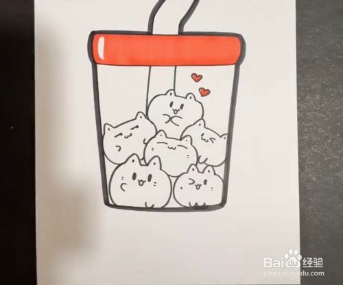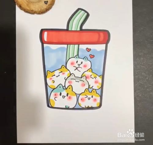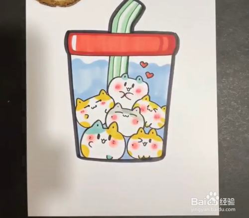 在杯子里面换一些,自己非常喜欢的卡通表情,包如图所是比如说小猫咪小狗小熊,小老鼠都是可以的。