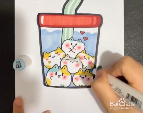 一支记号笔,随意地会画出一个饮料杯子,可以画出自己喜欢的形状。