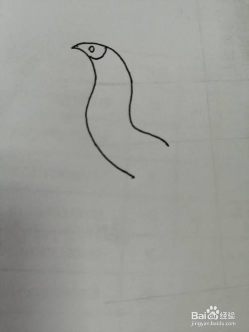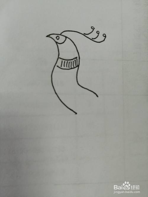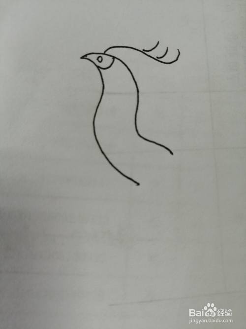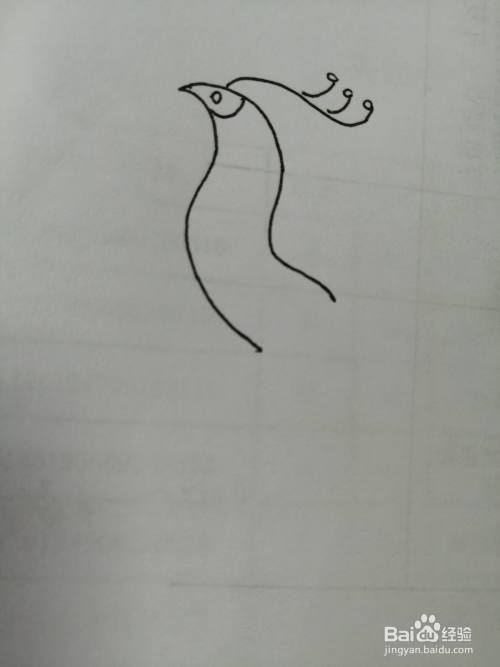 第三步,接着继续画出简笔画漂亮的小孔雀的头顶的触须部分。