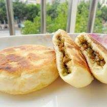 包好的糖饼擀圆后松弛十分钟,用中火两面烙至金黄。