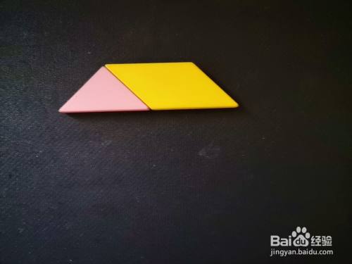 拿出一个粉色小三角形和一个黄色平行四边形,把它拼成下图的样子。