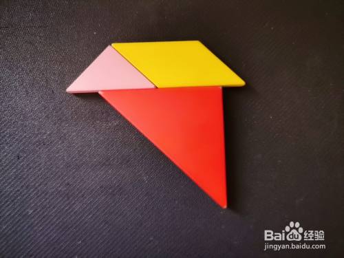 拿出一个红色大三角形放在步骤(2)的下面,如下图所示。