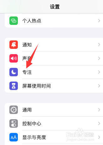 升级系统到ios15以后,在手机设置中,点击“专注”即可去根据需要设置专注模式。
