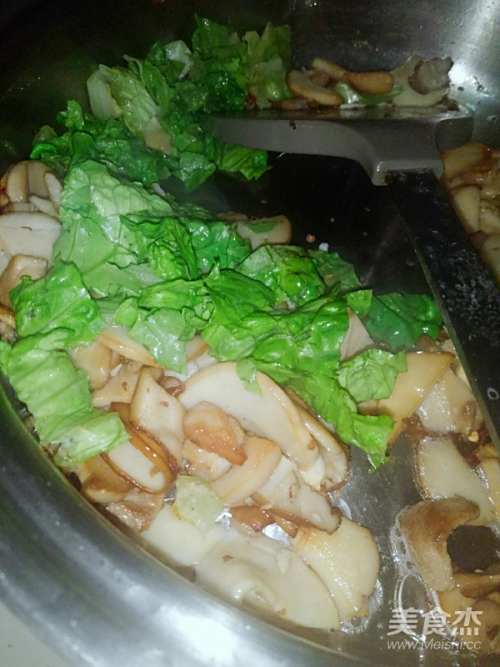 将杏鲍菇加入面上……!青菜
