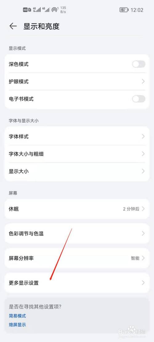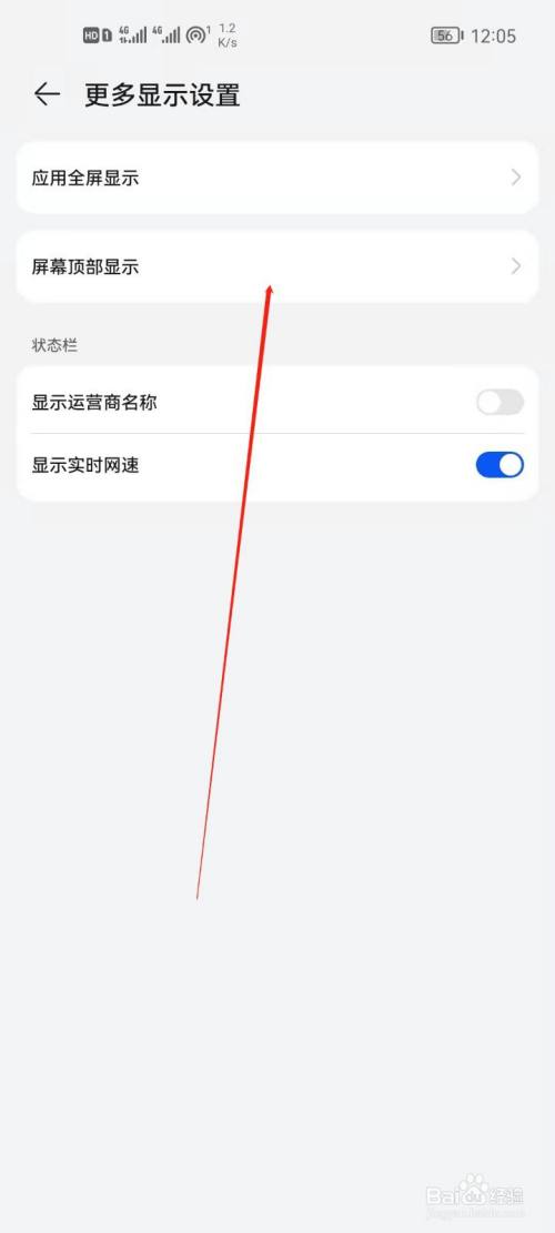 3、进入更多显示设置后,点击进入屏幕顶部显示