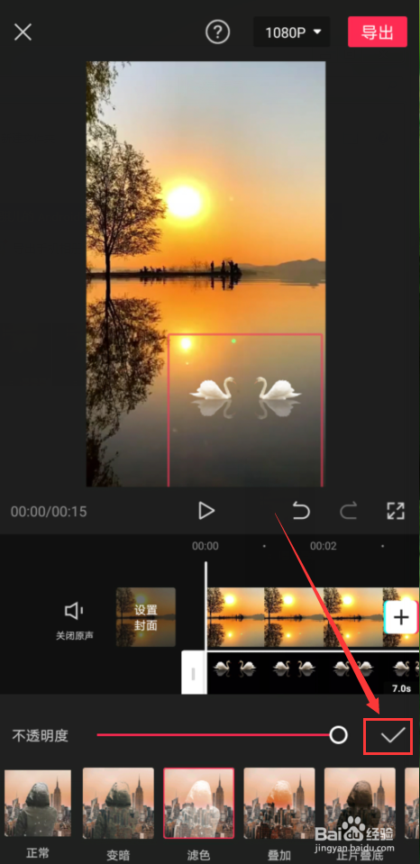 在混合模式里点选【滤色】,根据自己的需要调整滤色数值,之后点右下角的【对勾】符号。