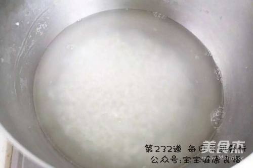 2大米淘洗两次放入锅中,熬煮。