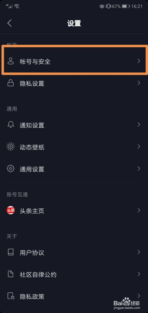 4.选择账号与安全。