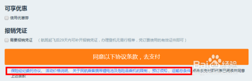 在接下来的页面中,首先确认订单信息,然后在网页最下端点击“同意以下协议条款,去支付”。当然,我们也可以详细阅读一下这些条,至少做到心里有数。另外,在这个页面,我们还可以选择比如附加保险、接机等服务。