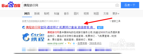 首先在百度里输入携程旅行网,点击第一个搜索结果,进入携程官网。