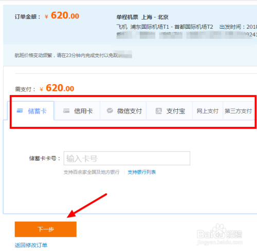最后,选择支付方式,进行支付就可以了。登机前,只要拿上身份证去领登机牌即可。