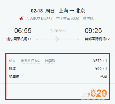 另外,在网页右侧会出现所定机票的基本信息,包括加上“基建”后的最终价格。