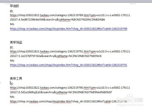制作好图片(1图),每个类目的链接pc、mo端口用文档做分类(2图)链接获取:点开自己店铺的分类页(图3)复制,