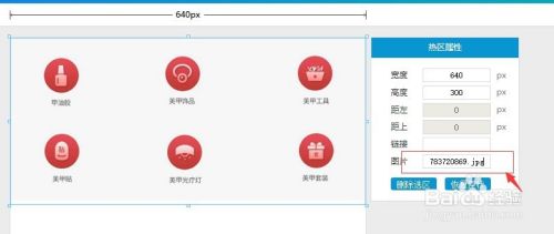 淘宝手机端店铺首页装修,会设置分类的导航,比如说美甲,会有甲油胶,功能胶,美甲套装等一系列的。 如何在图片上加入导航的热点呢?请看下面的步骤