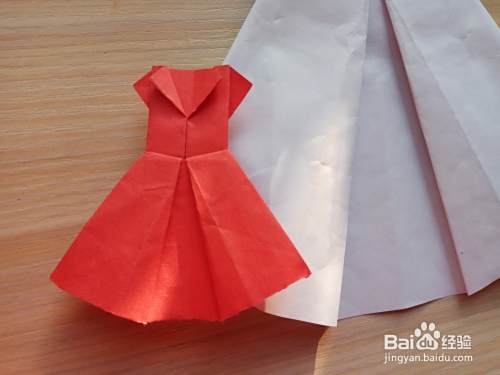 进行折叠第6步时,也和上面说的一样,将中间折叠横印稍松开点,然后折裙摆,再折叠腰横印。