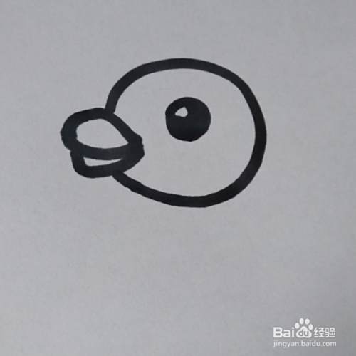 画出鸭子的头部轮廓,左侧不闭合,如图所示。
