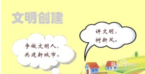 然后再画一个对话框,写入争做文明人,共建新城市的标语。