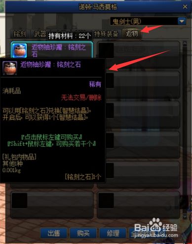 在诺顿商店“返物”,可使用铭刻之石兑换返物袖珍罐,开启后为1个智慧结晶、