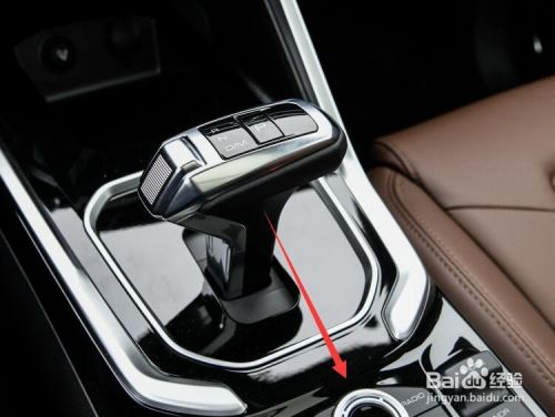 2、首先以以红蓝标的2.0T车型为例,它装备了电子档杆,我们把电子档杆往下拉一下就是D档,然后再往下拉一下就是M档,这才车载电脑上会有显示