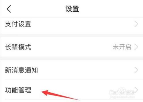 然后在设置页面中点击“功能管理”选项进入