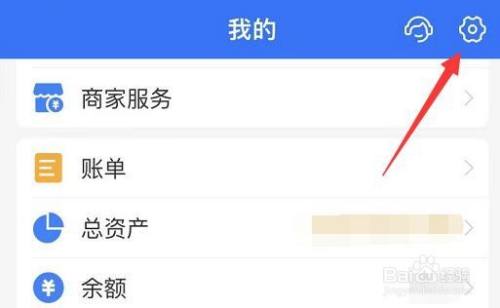首先进入手机支付宝,在“我的”界面中点击右上角的设置按钮,如图: