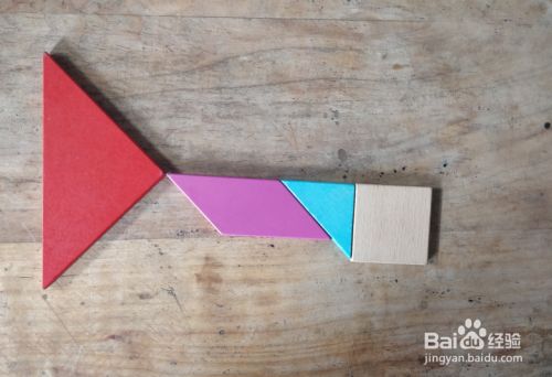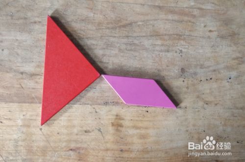 摆上正方形,放在小三角形的右侧挨着,上端一齐,如图。