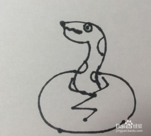在蛇头部偏上位置,画出蛇圆圆的眼睛。如图所示。
