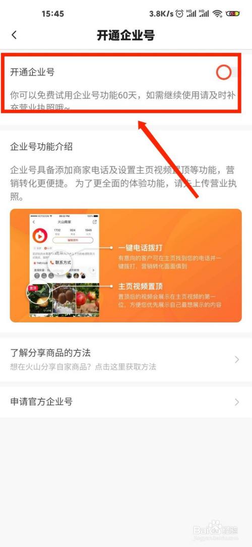 抖音火山版中企业号也是可以试用的,下面来看看吧。