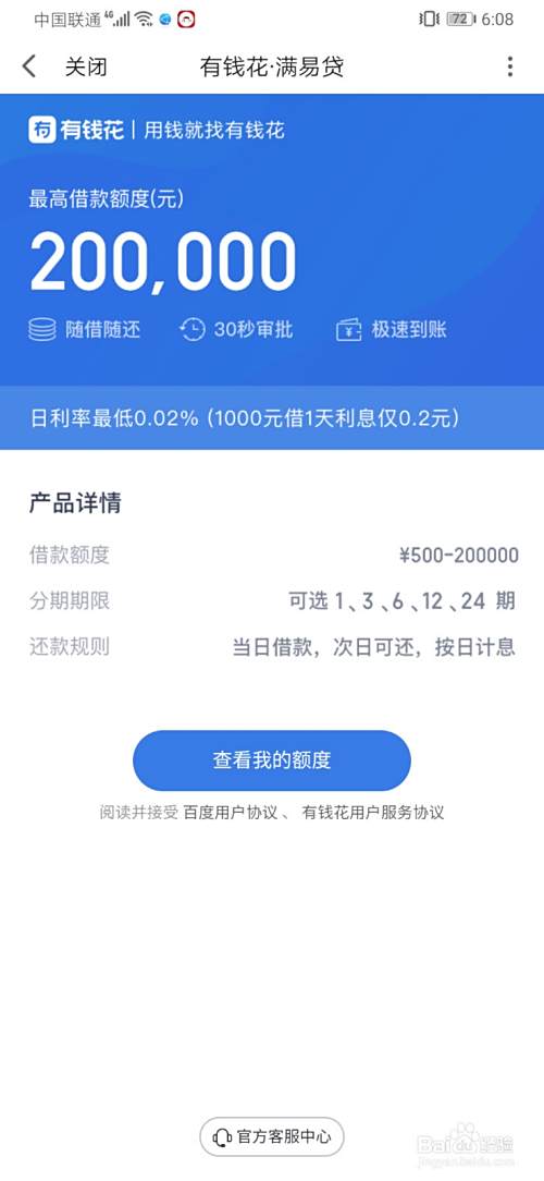 有钱花是度小满金融(原百度金融)推出的信贷服务品牌,靠谱利率低,无需抵押,审核方便放款快。