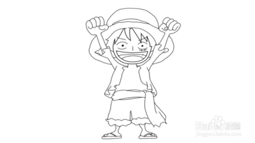 首先用铅笔勾勒出帅气海贼王的整体外廓。