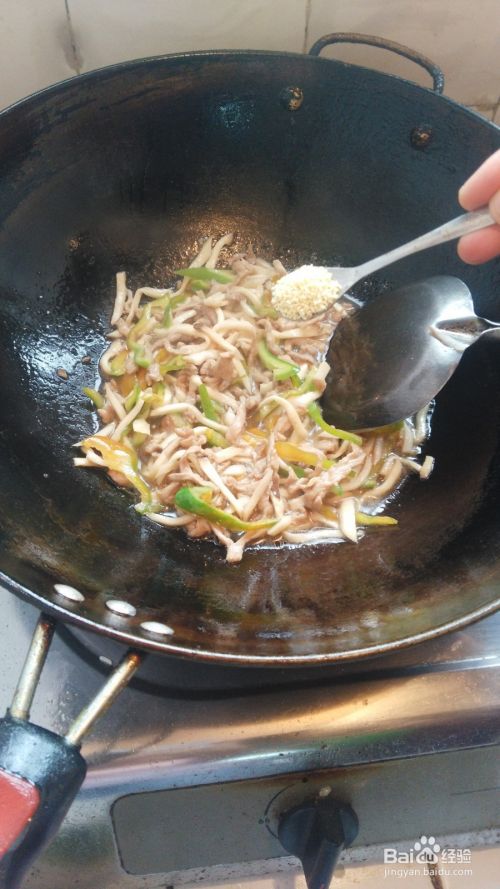 迅速翻炒一下,少炒一会,保持瘦肉的鲜嫩;