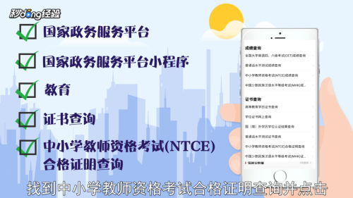 4在“证书查询”板块找到“中小学教师资格考试(NTCE)合格证明查询”并点击。