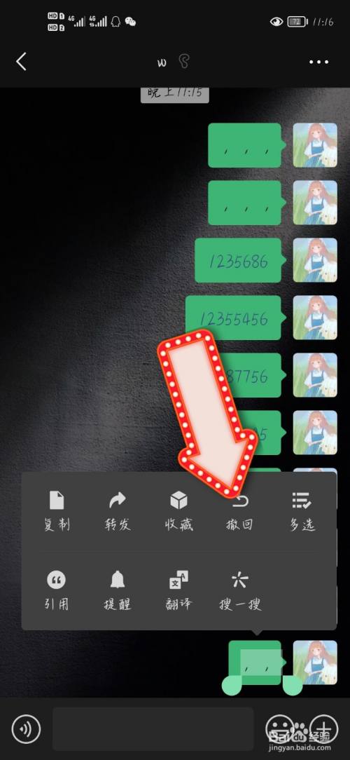 打开微信聊天框,选中自己想要撤回的已经超过两分钟的消息。