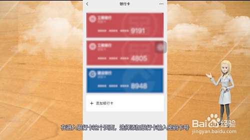 在进入银行卡这个页面,选择添加银行卡输入密码卡号。