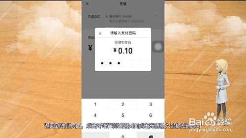 返回到钱包页面,点击零钱在弹出的页面点击充值输入金额密码即可。