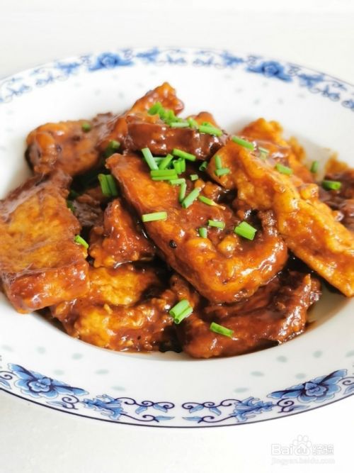 ③刚炸好的豆腐下去炒一下,起锅。(也可把这调料汁直接淋在炸好的豆腐上,这样表皮比较脆。)