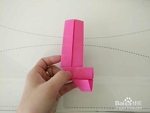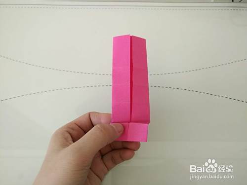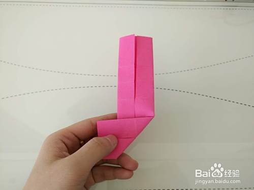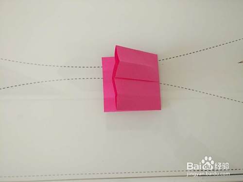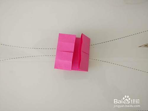 第五步:把折好的纸两侧左右折叠,形状格子折痕。