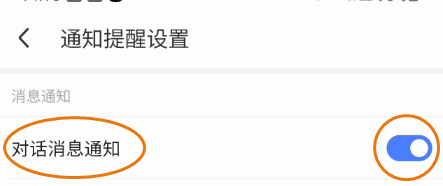 进入通知提醒设置点击对话消息通知右侧的按钮即可