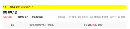 参考下图可以找到自己所属的究竟是哪一个消费体系,每一个消费体系对应不同的等级达标要求。