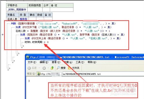 PS:目的是当所有代码都返回真的时候,再让时钟1周期事件不再执行并断开服务器,周期变为0,否则继续会从FTP服务器下载“在线人数.txt”文件