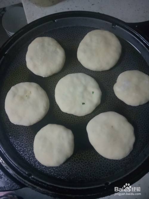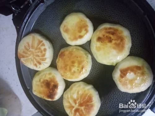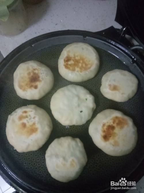 电饼铛预热后加入少许的油,油温升起后把饼放入其中,盖上盖子焖一会,待一面微黄后翻另一面,两面微黄后时不时的翻面,让其均匀受热。最后饼焦黄后就可以盛出装盘开吃了。