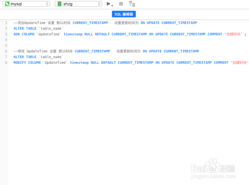 --添加updatetimeALTER TABLE `orders`ADD COLUMN `updatetime` timestamp NULL DEFAULT CURRENT_TIMESTAMP ON UPDATE CURRENT_TIMESTAMP;