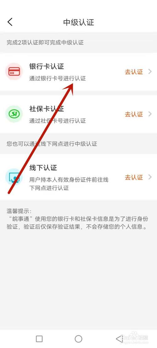 根据需要选择中级认证的方式,通过银行卡号进行认证。