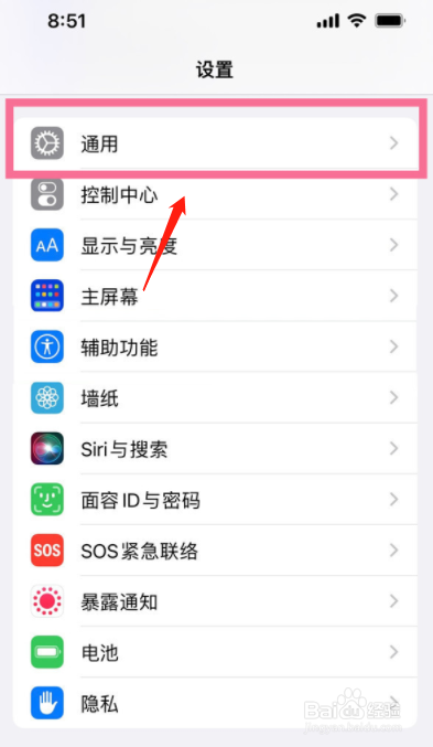 在旧手机设置菜单中点击【通用】。
