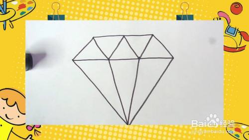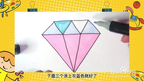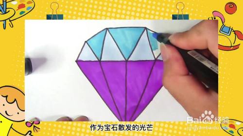 最后下面部分涂上紫色,上面三角形涂上深蓝色,下面三个涂上灰蓝色,整个图案的上方用蓝色画几条线作为宝石散发的光芒就完成了。