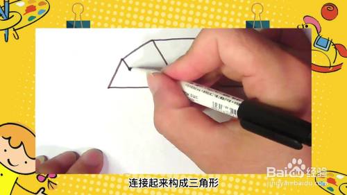 然后在短直线左右旁边画出折线与长直线组成三角形,接下来这些三角形的顶点画出延长线汇聚于一点。