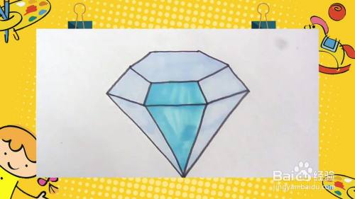 接下来整个图形涂上蓝色,中间部分涂满更深一点的蓝色从而突显光打在宝石身上的光感就好了。