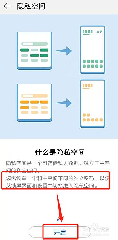 在页面中输入与主空间不同的密码,即隐私空间密码,在锁屏页面输入不同密码即可进入到不同的系统。