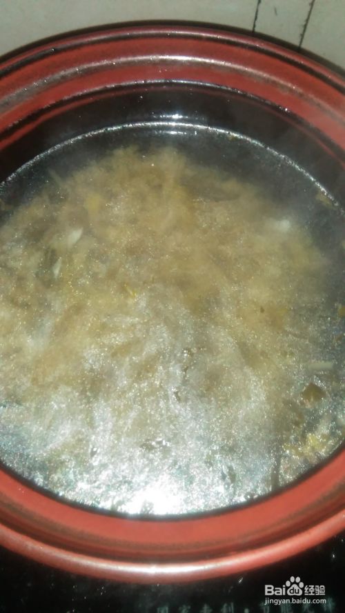 加入热开水,再加入少许盐,酱油煮沸2分钟。