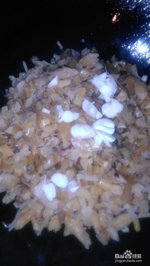 酸菜洗干净后切好,锅放入油烧热,把酸菜倒入锅中,放入大蒜头翻炒2-3分钟。